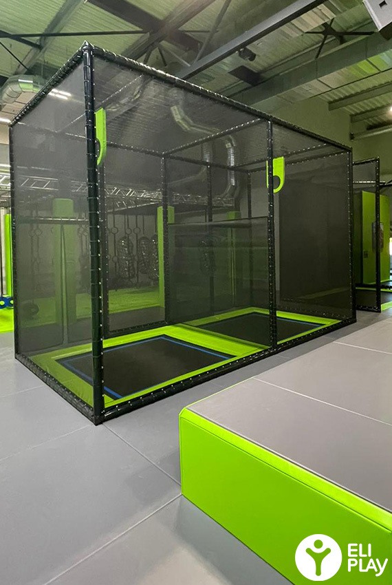 The Cage Ball consists of two separate trampolines and is separated in the middle by means of a net. The Cage Ball is equipped with nets, so that it forms an enclosed space in the park. The measurement of the Cage Ball is 6 x 3 meters.